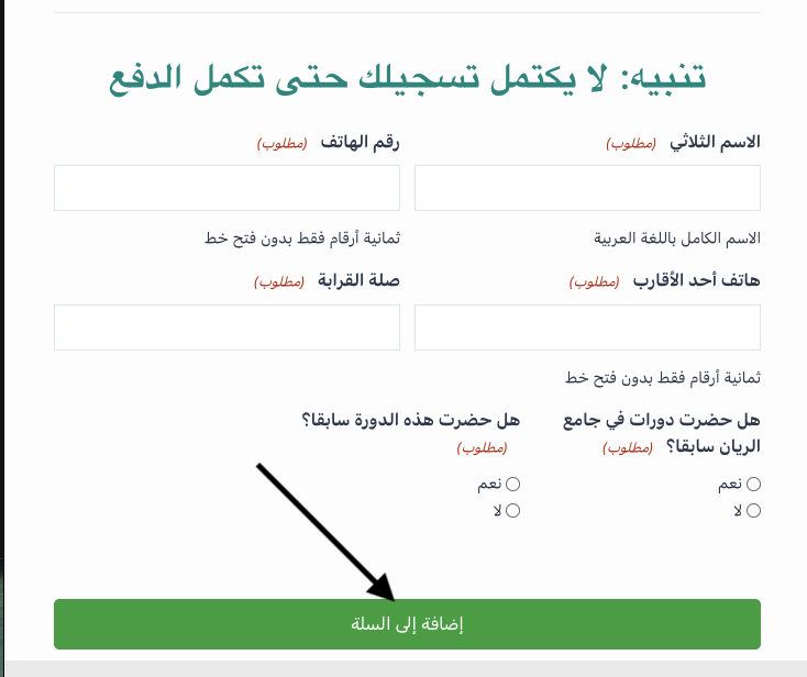 اكتب بياناتك كاملة ثم اضغط (إضافة إلى السلة)